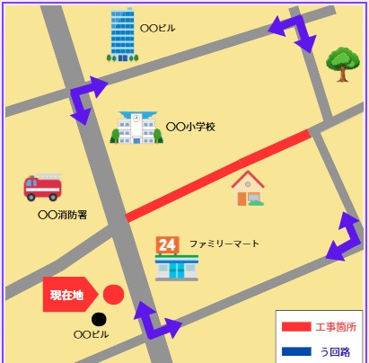 もちろん、イラストは入れなくてもいいのですが、小学校近隣の工事でしたら、このようなイラストがあったら、お子様たちにも興味を持ってもらえるかもしれませんね。